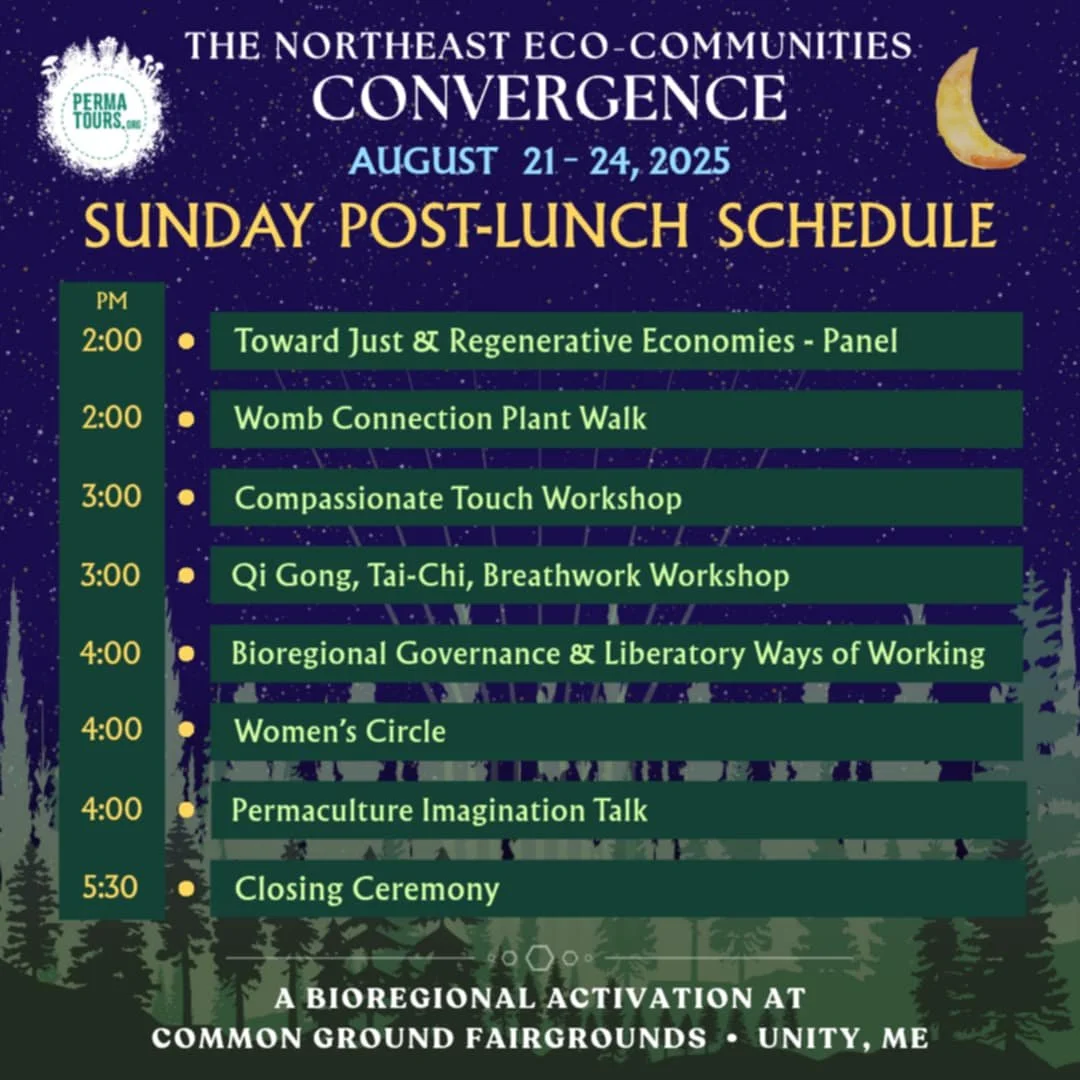 2 PM - PANEL | Toward Just and Regenerative Economies | How we can honor the intelligence of place through resilient local circular economies, mutual aid networks, and systems that uphold the rights of nature—while exploring multiple forms of capital and emerging meta-currencies. (Features: Scott Vlaun, Josie Watson, Stephen Filler, Eliza Jacobs, Taryn MacGregor, Raven; Moderator: Susanna Choe)