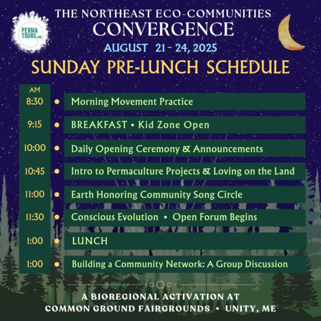 10:30/45 AM - Intro to Daily Hands-On Permaculture Projects & Daily Announcements
